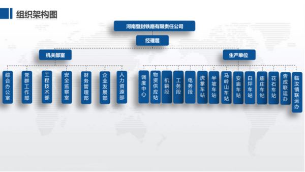 河南登封鐵路有限責(zé)任公司負(fù)責(zé)登封鐵路的運(yùn)輸及運(yùn)營(yíng),登封鐵路全長(zhǎng)90.215公里,途經(jīng)平頂山、洛陽、鄭州、許昌四個(gè)地市,于1995年12月開工建設(shè),2003年開通運(yùn)輸。目前開辦運(yùn)輸業(yè)務(wù)和承擔(dān)直通分流任務(wù),共擁有鐵路大型貨場(chǎng)11座,貨位460個(gè)。